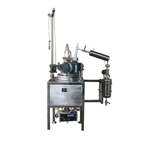 減壓蒸餾反應(yīng)釜是一種快速將液體介質(zhì)濃縮或分離的裝置,反應(yīng)介質(zhì)在反應(yīng)釜中被加熱至沸點、通過攪拌系統(tǒng)不斷地旋轉(zhuǎn)增大蒸發(fā)表面積,加快蒸發(fā)速度,適當(dāng)?shù)恼婵諚l件使達(dá)到沸點的介質(zhì)快速分離,通過冷凝器冷凝后并收集。