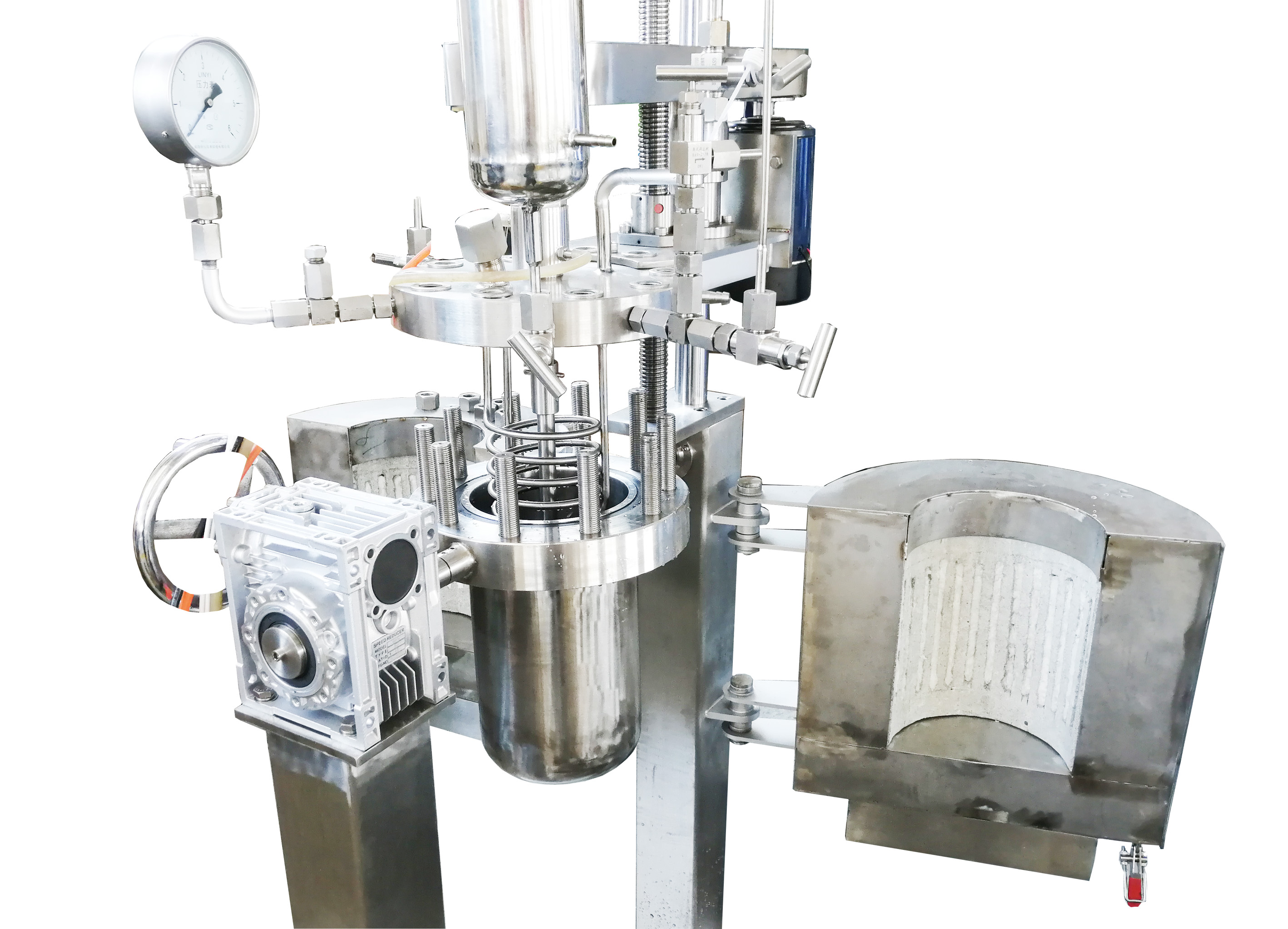 正威升降翻轉(zhuǎn)反應(yīng)釜,釜蓋電動(dòng)升降,釜體翻轉(zhuǎn),便于出料,可以根據(jù)客人需要另配一套內(nèi)膽,在不翻轉(zhuǎn)釜體的情況下,也可方便提出物料。是科研院所,研究機(jī)構(gòu)前期試驗(yàn)的理想裝置。